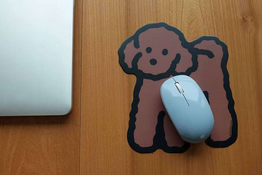 The slim profile of the mouse pad hugs the desk and provides a comfortable surface for the users.