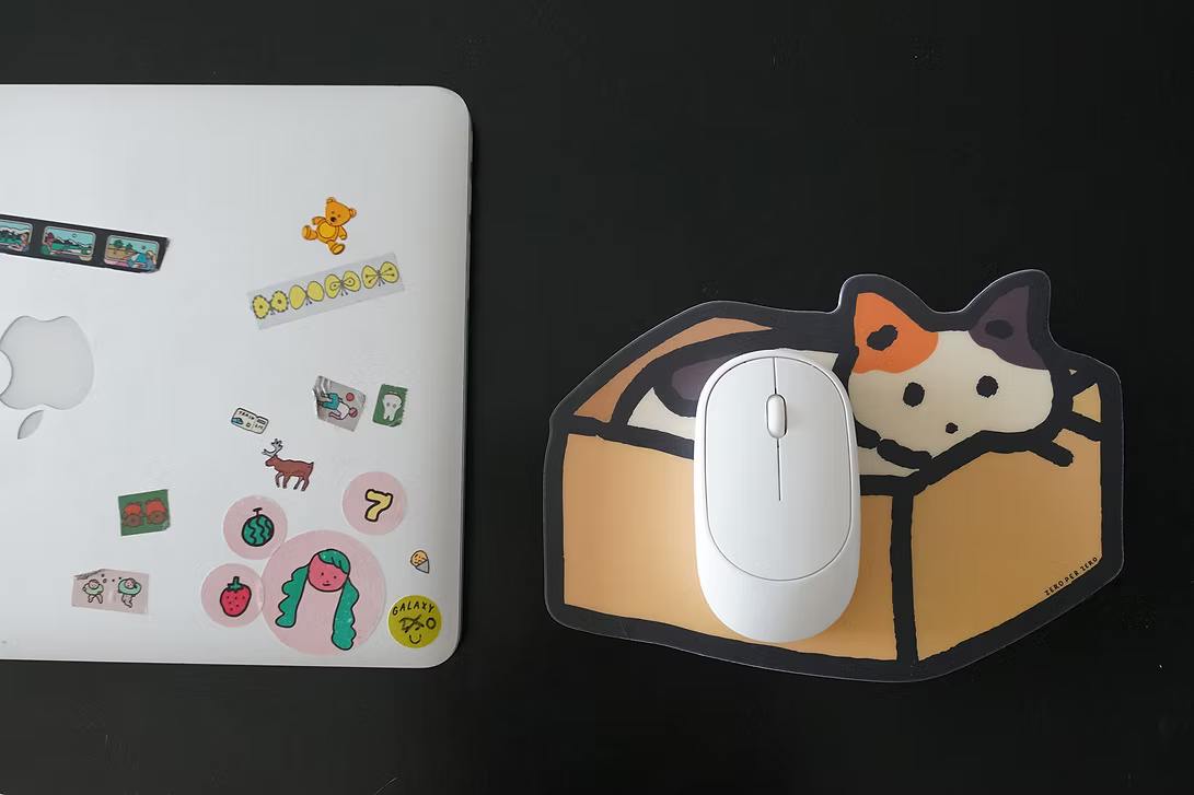 The slim profile of the mouse pad hugs the desk and provides a comfortable surface for the users.